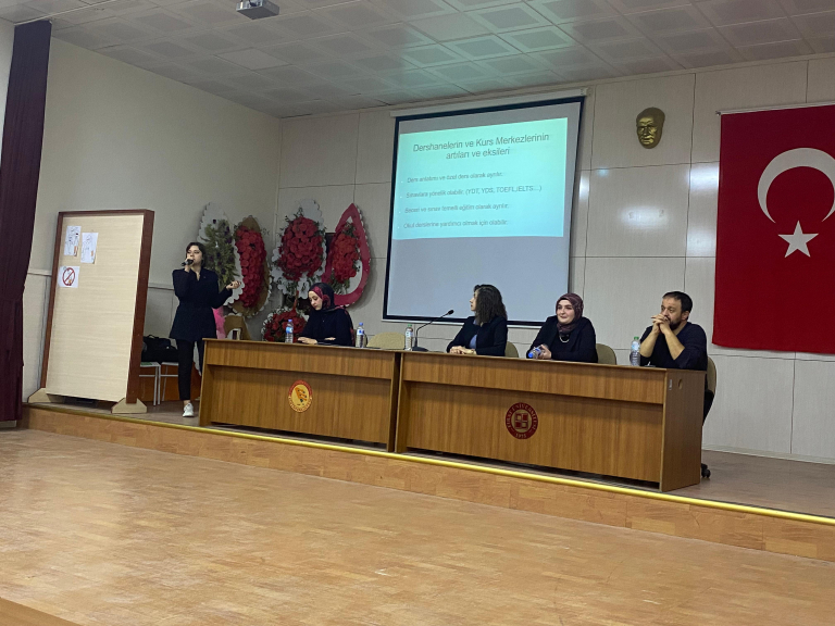Konferans kapsamında öğrenci konuşmacılar, mezuniyet sonrası eğitim yolları, lisansüstü fırsatlar, sınav süreçleri ve mesleki gelişim için gerekli beceriler gibi pek çok konuda katılımcılara açık ve net rehberlik sağlamışlardır. Ardından yöneltilen tüm soruları özenle yanıtlamışlardır.