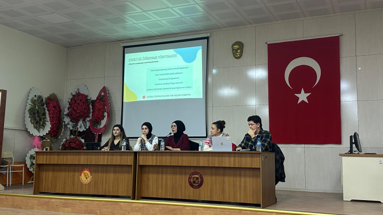 25 Aralık 2025 tarihinde Eğitim Fakültesi Şehit Canbert Tatar Konferans Salonu’nda düzenlenen etkinlikte, İngilizcenin akademik yaşamda, mesleki gelişimde ve küresel iletişimdeki önemi ele alındı. Söyleşi boyunca öğrenciler, İngilizcenin yalnızca bir ders olmanın ötesinde, bireylere sunduğu akademik ve profesyonel fırsatlar üzerine farkındalık kazandı. Yoğun katılımla gerçekleşen etkinlik, katılımcıların ilgiyle takip ettiği paylaşımlar ve etkileşimli soru-cevap bölümüyle sona erdi.