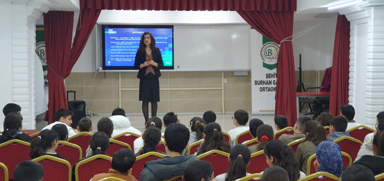 Öğrencilerin ilgiyle takip ettiği etkinlikte, etkileşimli bir sunum gerçekleştirilmiş ve katılımcılarla verimli bir bilgi paylaşımı sağlanmıştır.