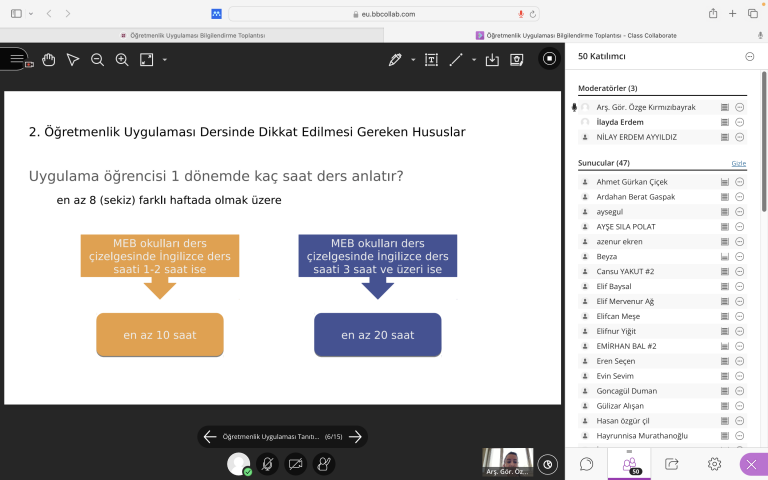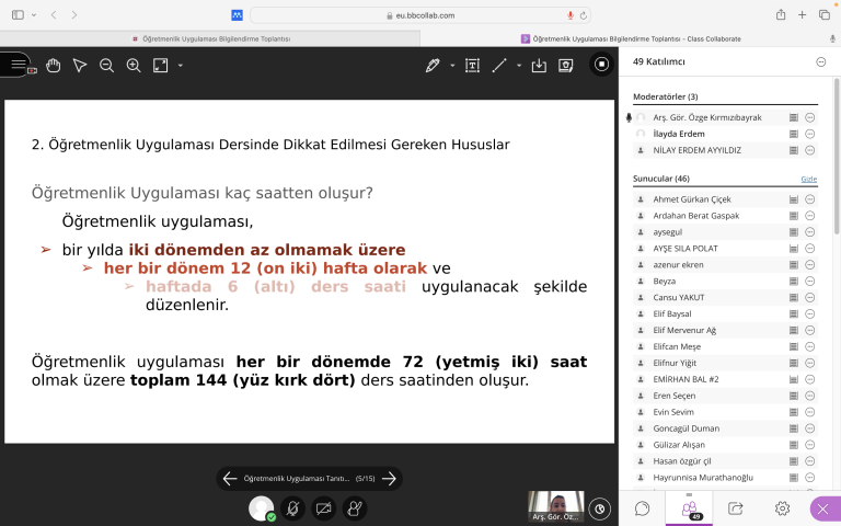 Toplantıda, öğretmenlik uygulamasının öğretmen adayları için önemi, uygulama süresince dikkat edilmesi gereken hususlar ve staj okullarında uyulacak kurallar ele alındı. Öğrencilerin sorumlulukları hatırlatılarak, sürecin daha verimli geçmesi için gerekli yönlendirmeler yapıldı.