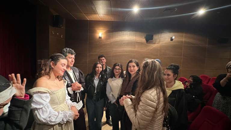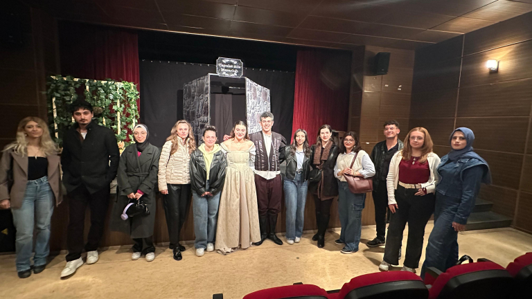 Bölümümüz tarafından düzenlenen etkinlikler kapsamında, 17 Ekim Cuma günü Nurettin Ardıçoğlu Kültür Merkezi’nde sahnelenen “Romeo ve Juliet” adlı tiyatro oyununa katılım sağladık. Öğrencilerimiz, bu etkinlik sayesinde hem edebiyat ve sahne sanatlarını yakından tanıma fırsatı buldu hem de kültürel bir paylaşım ortamı yaşadı.